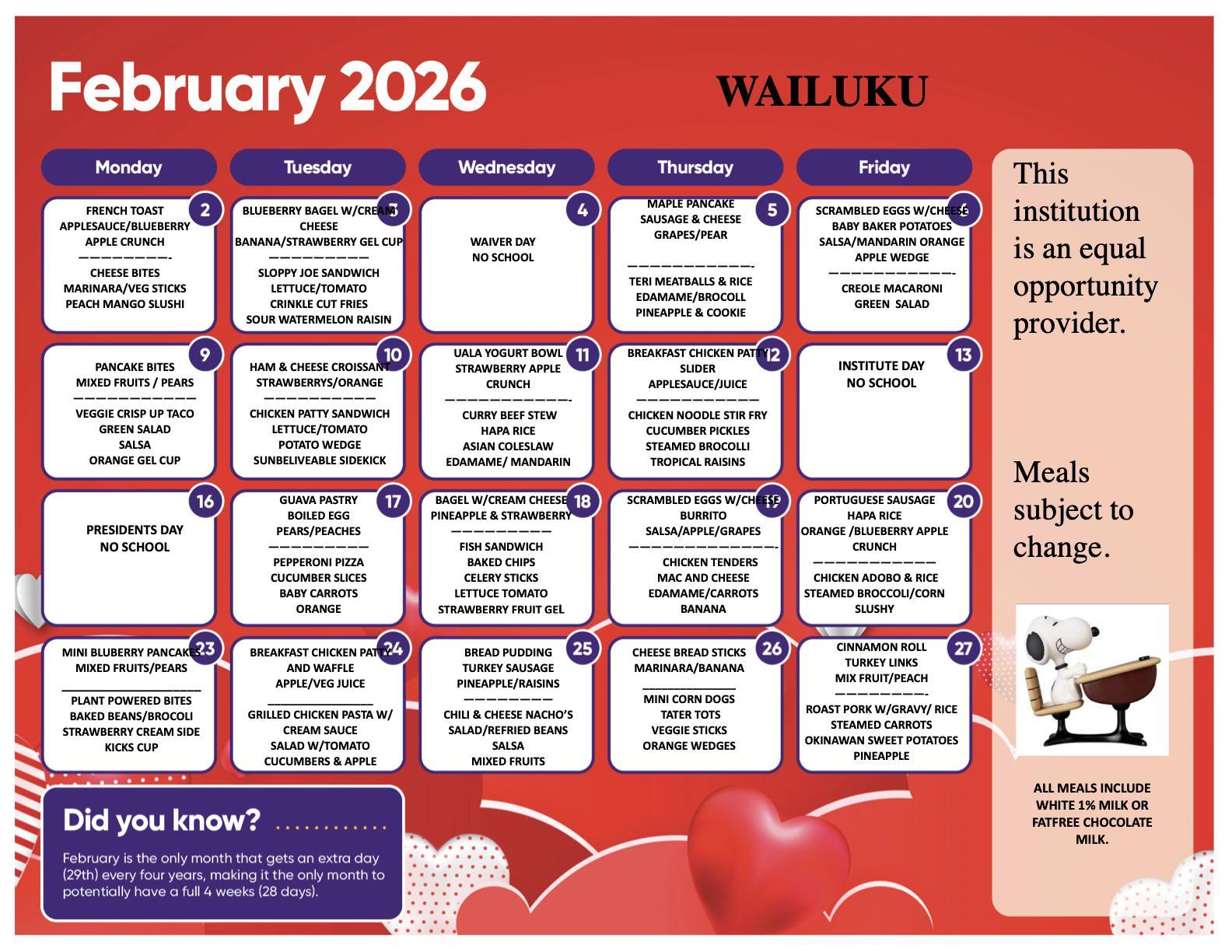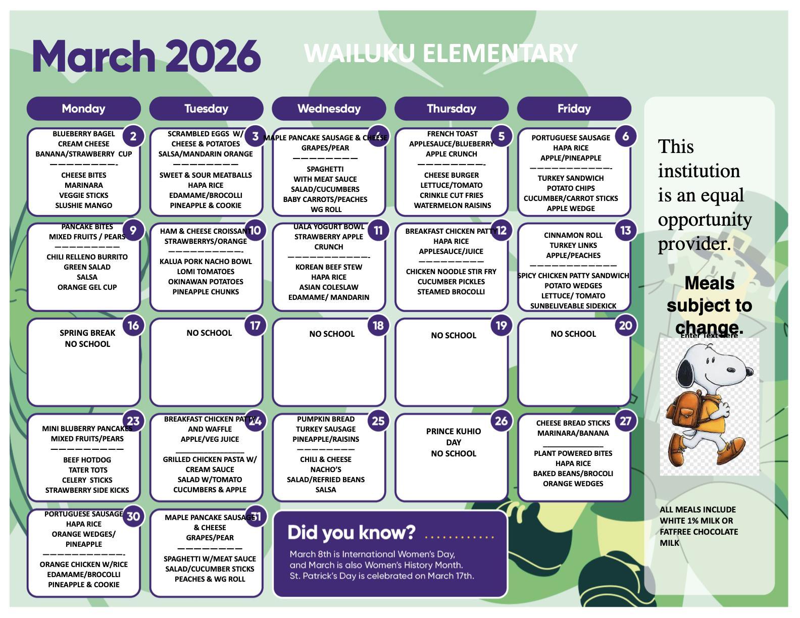 School Breakfast and Lunch Menus